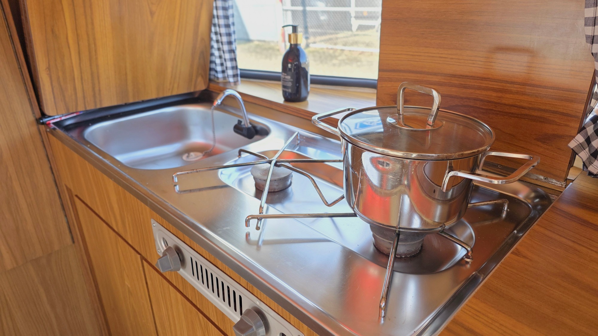 – Kopkeuken met 2‑pits gastoestel en wasbak